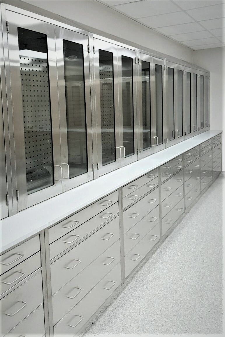 This Stainless Steel Cabinet with Drawers comes in many options to meet all your laboratory needs. This includes customizing the number of doors, drawers, and overall dimensions. Custom Fabricators welcomes the opportunity to meet your specific design solutions.